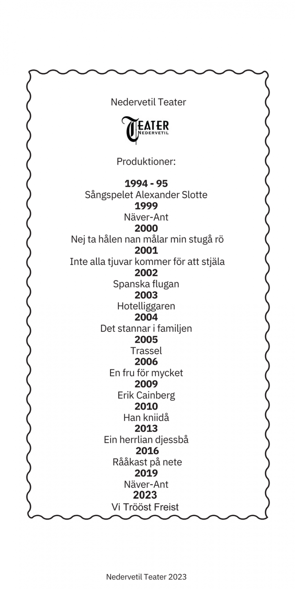 i Nedervetil vi har nu satt ut 7 föreställningar men ökar på efterhand.