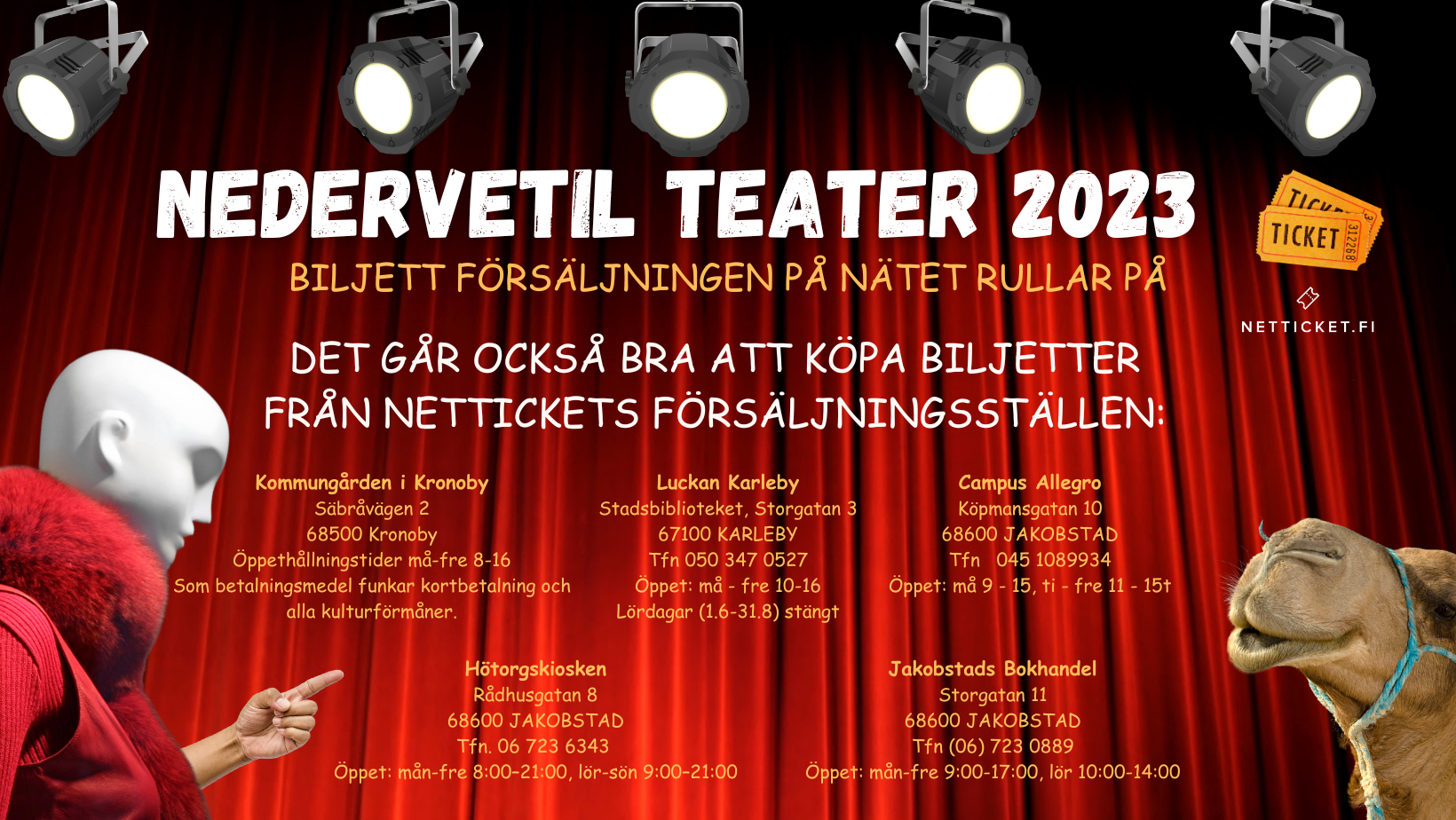 Nedervetil teater är Hembygdsföreningens teatersektion. Teatern har spelat såväl sommarteater som farser med stor framgång.